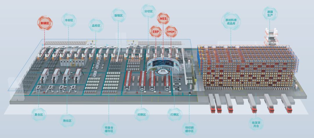 2022年底,一座嶄新的智能印廠在AI加持下正式投產(chǎn)。該項(xiàng)目結(jié)合了多種類數(shù)據(jù)采集技術(shù),配合48臺(tái)單機(jī)在線檢測(cè)系統(tǒng)實(shí)現(xiàn)車間客戶156臺(tái)設(shè)備與MES系統(tǒng)、GMQM質(zhì)量管理系統(tǒng)閉環(huán)。