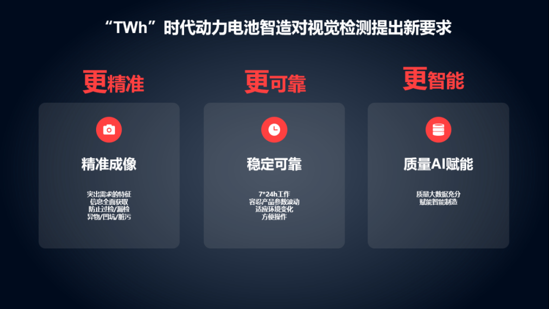 凌云光解決方案總監(jiān)姚明儒介紹道,“TWh”時(shí)代智能制造的需求是生產(chǎn)智能化、檢測(cè)智能化、管理智能化;工業(yè)視覺領(lǐng)域的世界級(jí)難題是缺陷檢出不穩(wěn)定、“省人”戰(zhàn)略不明顯、數(shù)據(jù)價(jià)值難體現(xiàn);“TWh”時(shí)代動(dòng)力電池智造對(duì)視覺檢測(cè)提出更精準(zhǔn)、更可靠、更智能的新要求。未來在大數(shù)據(jù)和云計(jì)算技術(shù)加持下,實(shí)現(xiàn)工業(yè)生產(chǎn)的數(shù)據(jù)化、知識(shí)化與智能化,將極大的提高生產(chǎn)與品質(zhì)管理水平。