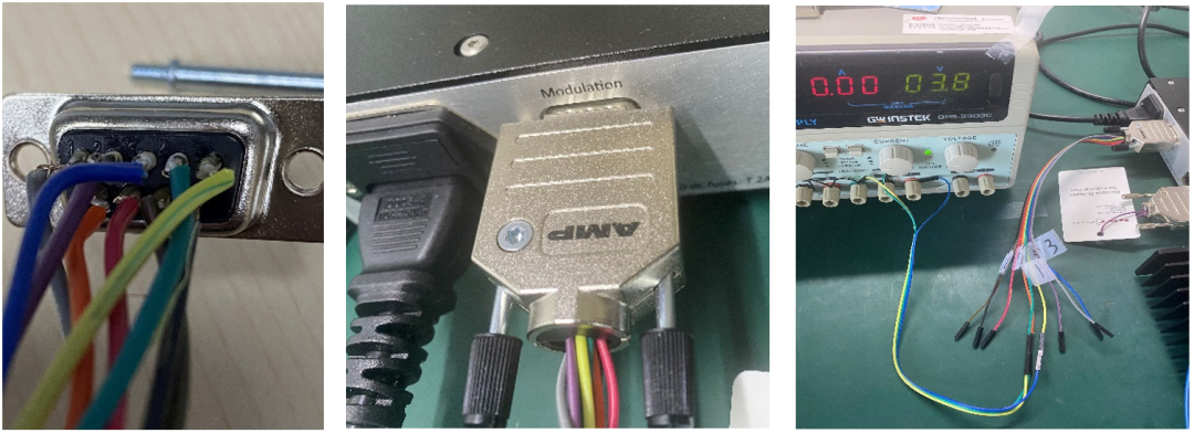用戶可參照上述針腳定義,根據(jù)需要自己制作一個(gè)9pin接頭,用不到的針腳可以空置不接線(注意接頭上的針腳數(shù)字要和Modulation接口對(duì)應(yīng)),如下圖所示: