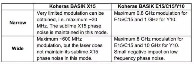 ▲不同型號(hào)激光器的調(diào)制幅度表