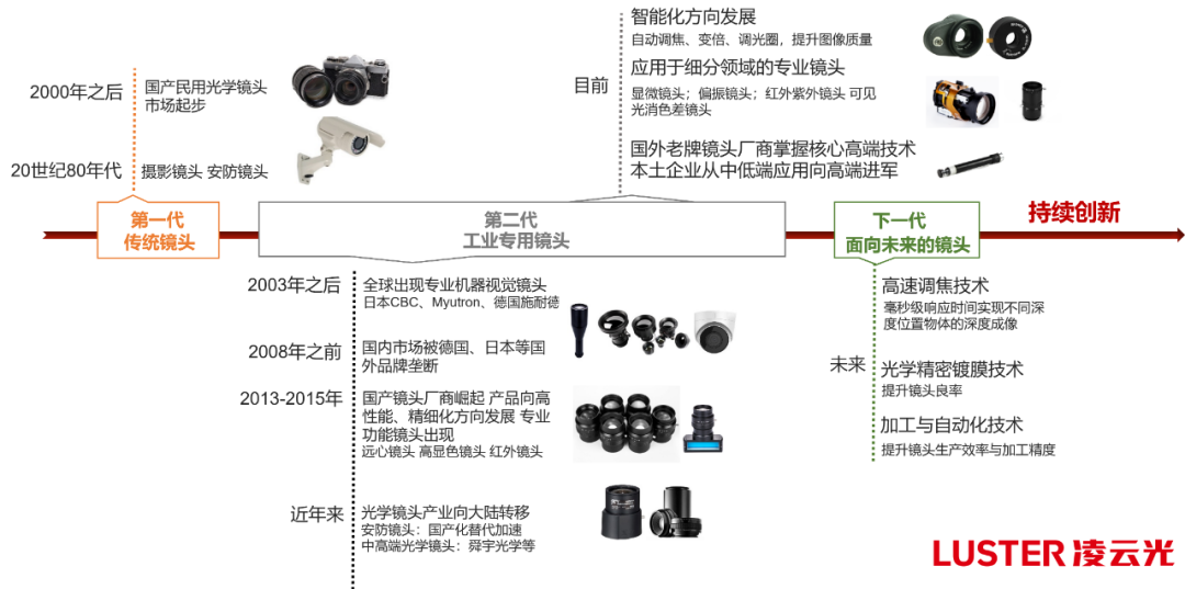 在一代又一代的工業(yè)革命浪潮推動下,機器視覺發(fā)展被催生,作為機器視覺中重要器件鏡頭的發(fā)展已經(jīng)跨越了整整兩個世紀,是國產(chǎn)還是進口?如今鏡頭的發(fā)展是怎樣的?今天請跟隨凌小云的步伐,一起回溯鏡頭發(fā)展史。