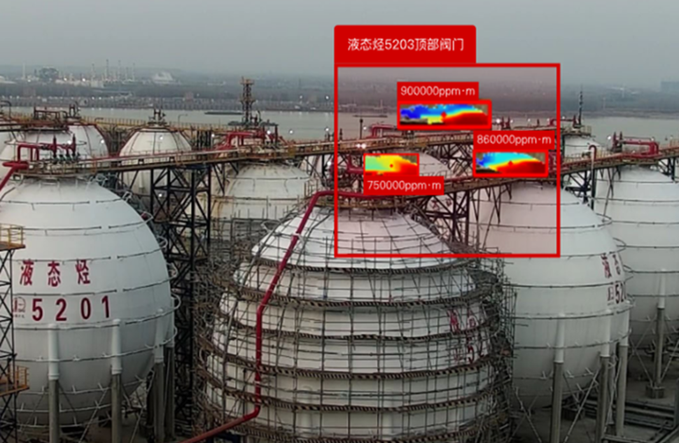 圖2 氣體泄漏紅外光譜成像監(jiān)測效果(客戶現(xiàn)場實拍)