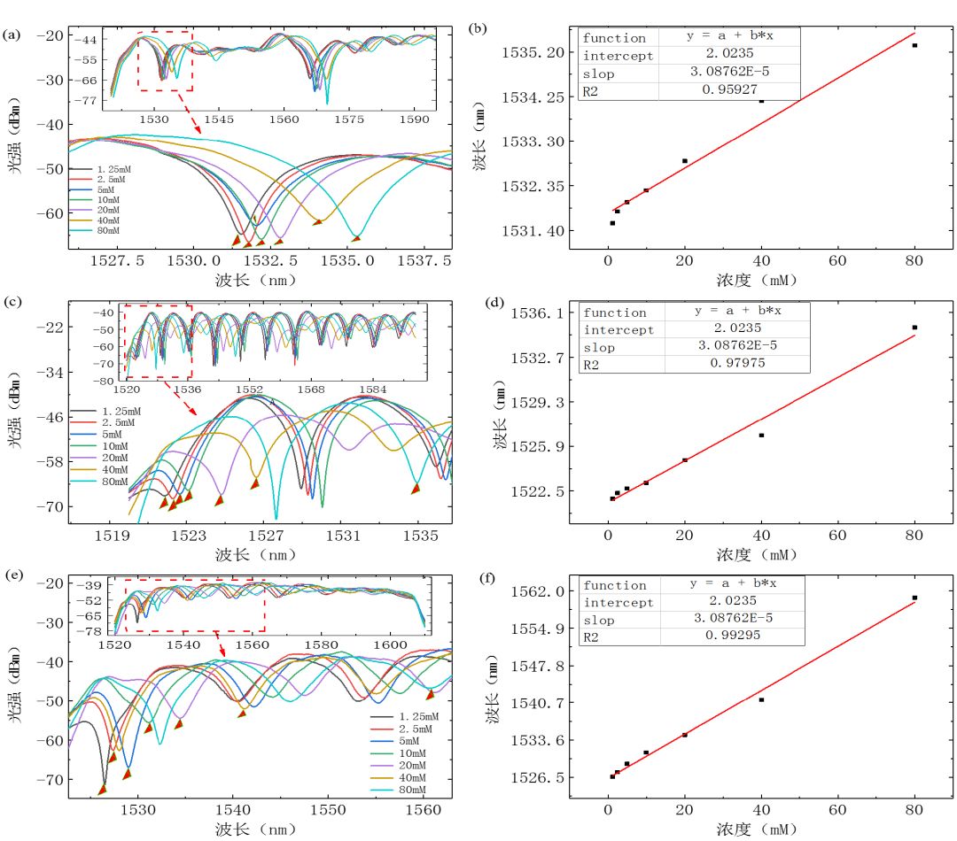 最終達(dá)到近2000nm/RIU高靈敏度的測(cè)試精度,線性度0.99達(dá)以上實(shí)驗(yàn)結(jié)果