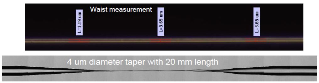 使用SMF28光纖制作了20mm長(zhǎng),4um直徑的光纖錐形