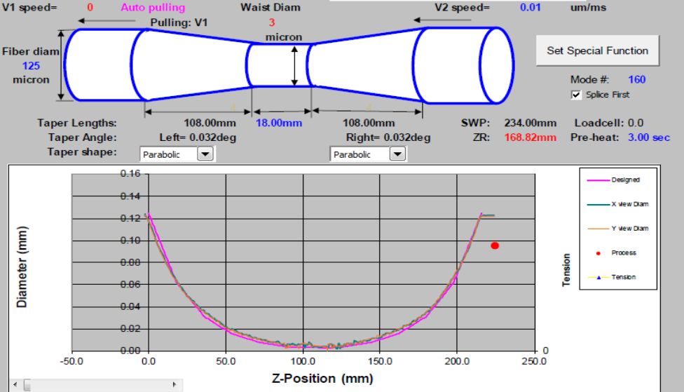 拋物線拉錐測(cè)試軟件對(duì)光纖錐形測(cè)試