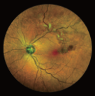 眼底彩照影像:針對(duì)小瞳孔和屈光介質(zhì)渾濁,也可在造影前拍攝排除假熒光。