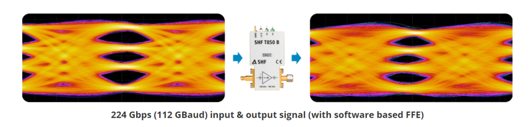 SHF T850B可支持最高112GBaud PAM4信號的放大,其實測效果圖如下: