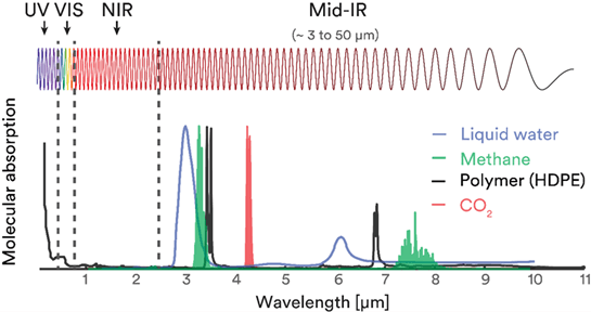 中紅外覆蓋了分子最重要的光譜特征,使該波段成為分子傳感的理想指紋區(qū)域,并可以優(yōu)化開發(fā)緊湊的片上傳感器,用于環(huán)境監(jiān)測(cè),工業(yè)過程控制甚至醫(yī)療診斷。