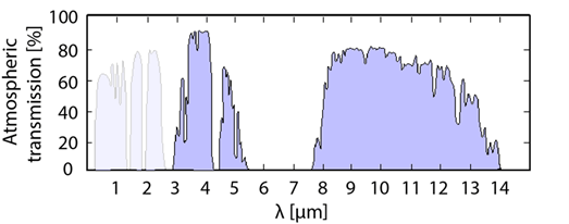 中紅外區(qū)還包含兩個(gè)主要的大氣透射窗口(3-5μm和8-12μm區(qū)域),這些光譜窗口內(nèi)的激光可以遠(yuǎn)距離傳播,從而在防御(如導(dǎo)彈對(duì)抗)等領(lǐng)域中有多種應(yīng)用。
