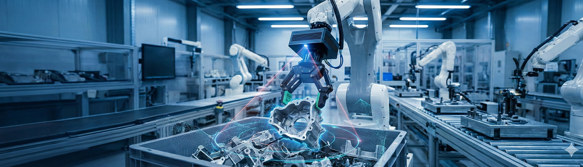 在工業(yè)現(xiàn)場,物料通常以堆疊、混放、遮擋、反光等狀態(tài)存在,無序抓取通常面臨四大“落地難題”。