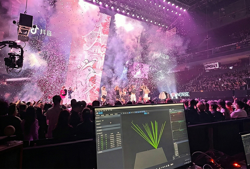 基于UE+ST2110全新xR技術(shù)架構(gòu),通過光傳輸聯(lián)通GPU顯存,符合總臺超高清制播標(biāo)準(zhǔn);自研InFision虛擬渲染系統(tǒng)確保屏幕內(nèi)外畫面顏色一致,攝像機移動時屏幕內(nèi)外畫面相對位置和動畫時間一致,實時為演員創(chuàng)建虛擬影子,人影一致。